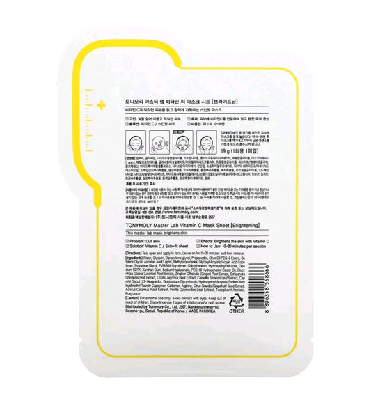 Tony Moly Master Lab, Vitamin-C Brightening Beauty Mask, 1 Sheet, 19 g