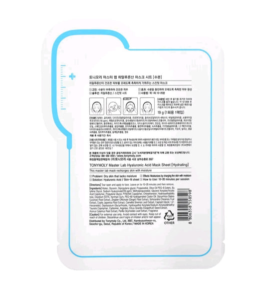 Tony Moly Master Lab, Hyaluronic Acid Beauty Mask, Hydrating, 1 Sheet, 19 g